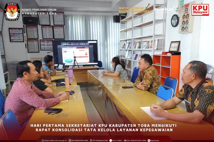 Hari Pertama Sekretariat KPU Kabupaten Toba Mengikuti Rapat Konsolidasi Tata Kelola Layanan Kepegawaian