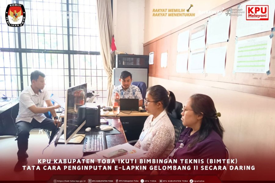 KPU Kabupaten Toba mengikuti kegiatan Bimbingan Teknis (Bimtek) Tata Cara Penginputan E-Lapkin Gelombang II secara daring melalui Zoom Meeting yang dilaksanakan selama 2 hari hari dari Tgl.24 s.d 25 September 2025, dari ruangan kerja Subbagian Perencanaan, Data, dan Informasi Sekretariat KPU Kabupaten Toba.