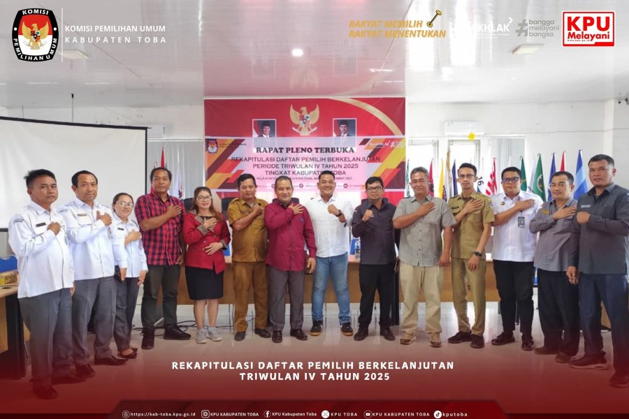 Komisi Pemilihan Umum Kabupaten Toba menggelar Rapat Pleno Terbuka Penetapan Daftar Pemilih Berkelanjutan (DPB) Triwulan IV Tahun 2025, bertempat di Lt. II Aula Kantor KPU Kabupaten Toba.
