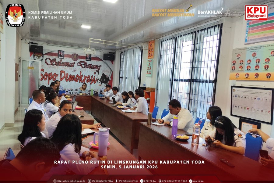 Segenap jajaran KPU Kabupaten Toba, Komisioner, Sekretaris, Para Kepala Subbagian, dan seluruh Staf ASN menghadiri Rapat Pleno Rutin Perdana di Awal Tahun 2026 bertempat di ruang RPP KPU Kabupaten Toba.
