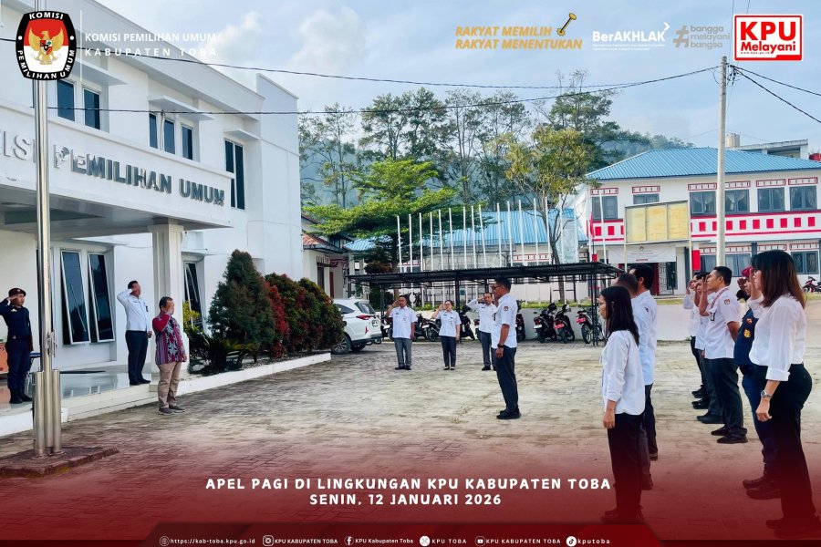KPU Kabupaten Toba melaksanakan apel bertempat di halaman kantor KPU Kabupaten Toba. Apel pagi dipimpin oeh Ketua KPU Kabupaten Toba Sugar Fernando Sibarani, dihadiri oleh Sekretaris KPU Kabupaten Toba Richardo F. Butarbutar dengan Komandan Apel Mardona Sinaga.