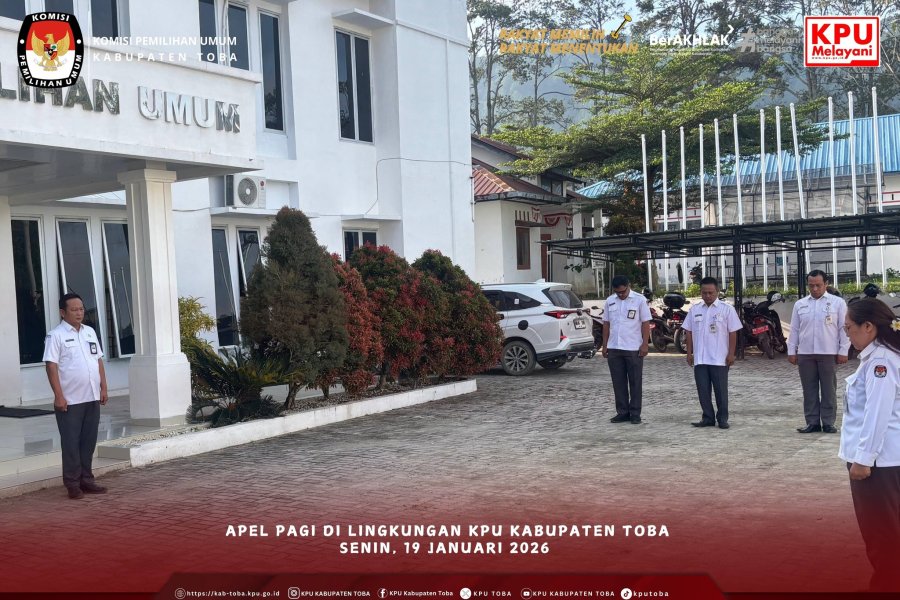 KPU Kabupaten Toba melaksanakan apel pagi bertempat di halaman kantor KPU Kabupaten Toba. Apel dipimpin oeh Sekretaris KPU Kabupaten Toba Richardo Butarbutar, dihadiri oleh para Kepala Subbagian dengan Komandan Apel Haryanti Simarmata.