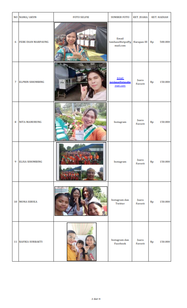 PEMENANG LOMBA SELFIE DI TPS TINGKAT KABUPATEN TOBA SAMOSIR