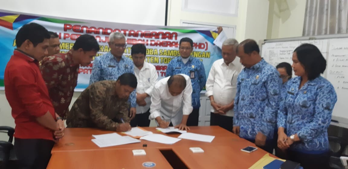 Sesuai dengan Tahapan, Program dan Jadwal Penyelenggaraan Pemilihan Gubernur dan Wakil Gubernur, Bupati dan Wakil Bupati, dan/atau Wali Kota dan Wakil Wali Kota, Komisi Pemilihan Umum Kabupaten Toba Samosir melaksanakan penandatanganan Naskah Perjanjian Hibah Daerah (NPHD) dengan Pemerintah Kabupaten Toba Samosir. Penandatanganan dilaksanakan di Kantor Bupati Toba Samosir pada hari Selasa tanggal 1 Oktober 2019. NPHD tersebut tertuang dalam Nomor 100/5203/Setda-Pem/2019 dan Nomor 2429/KU.07/1212/KPU-Kab/X/2019 tentang Pelaksanaan Dana Hibah Penyelenggaraan Pemilihan Bupati dan Wakil Bupati Kabupaten Toba Samosir Tahun 2020.