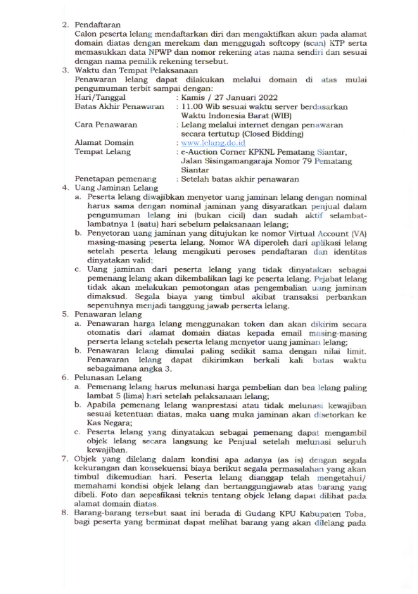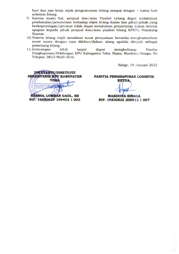 PENGUMUMAN LELANG LOGISTIK EKS PEMILU/PEMILIHAN Kamis, 20 Januari 2022 00:00 752 Selengkapnya dapat dilihat pada link berikut (KLIK) Bagikan: Telah dilihat 752 kali