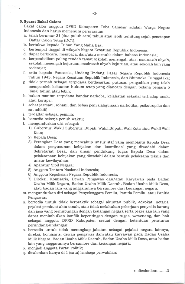 Pengumuman Pengajuan Bakal Calon Anggota DPRD Kabupaten Toba Samosir pada Pemilu Tahun 2019 Minggu, 01 Juli 2018 00:00 366 Bagikan: Telah dilihat 366 kali