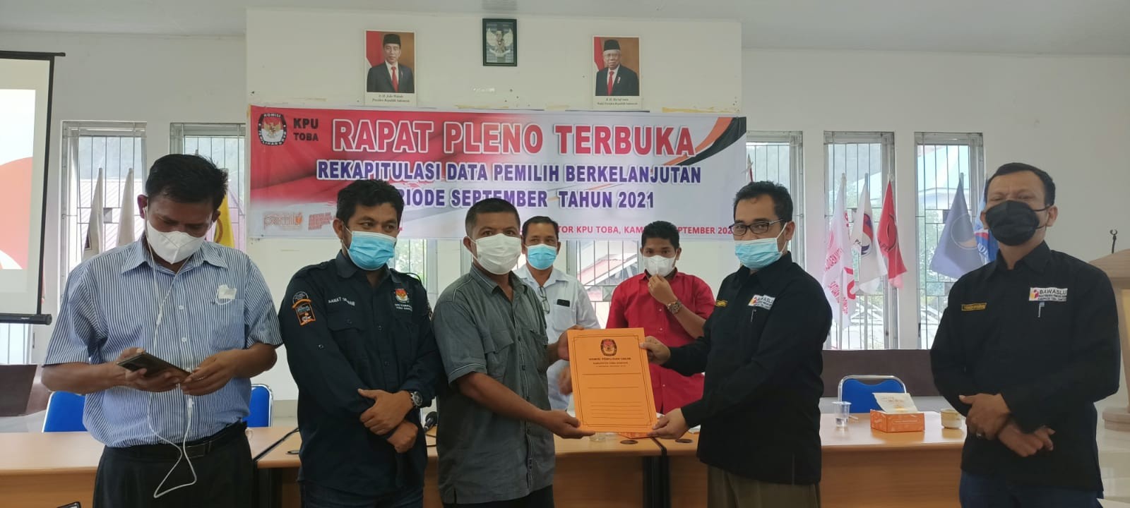 Komisi Pemilihan Umum Kabupaten Toba melaksanakan Rapat Pleno Terbuka Daftar Pemilih Berkelanjutan Periode Bulan September (Triwulan ke-III) Tahun 2021 pada hari Kamis tanggal 30 September 2021 bertempat di Aula KPU Kabupaten Toba.