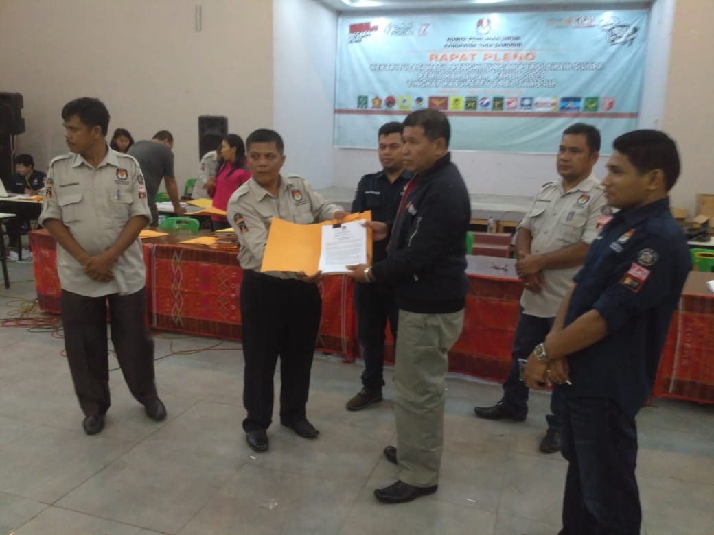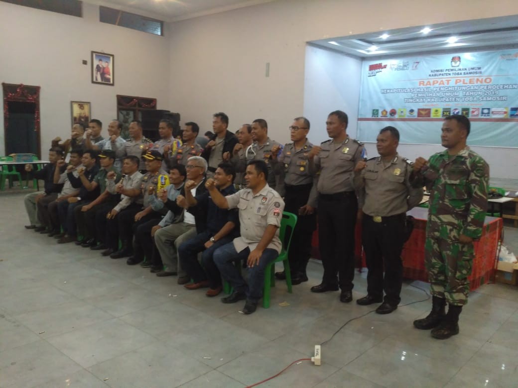 Komisi Pemilihan Umum Kabupaten Toba Samosir telah melaksanakan rekapitulasi hasil penghitungan perolehan suara Pemilu 2019 Tingkat Kabupaten Toba Samosir bertempat di: Wisma Op. Gora Hutahaean Jl. Hutahaean Laguboti. Kegiatan dilaksanakan selama 2 (dua) hari tanggal 1 s/d 2 Mei 2019 bersama PPK se-Toba Samosir, Saksi Peserta Pemilu, Bawaslu Toba Samosir, Forkopimda Toba Samosir, Pemerhati Pemilu, masyarakat dan Stakeholder lainnya.