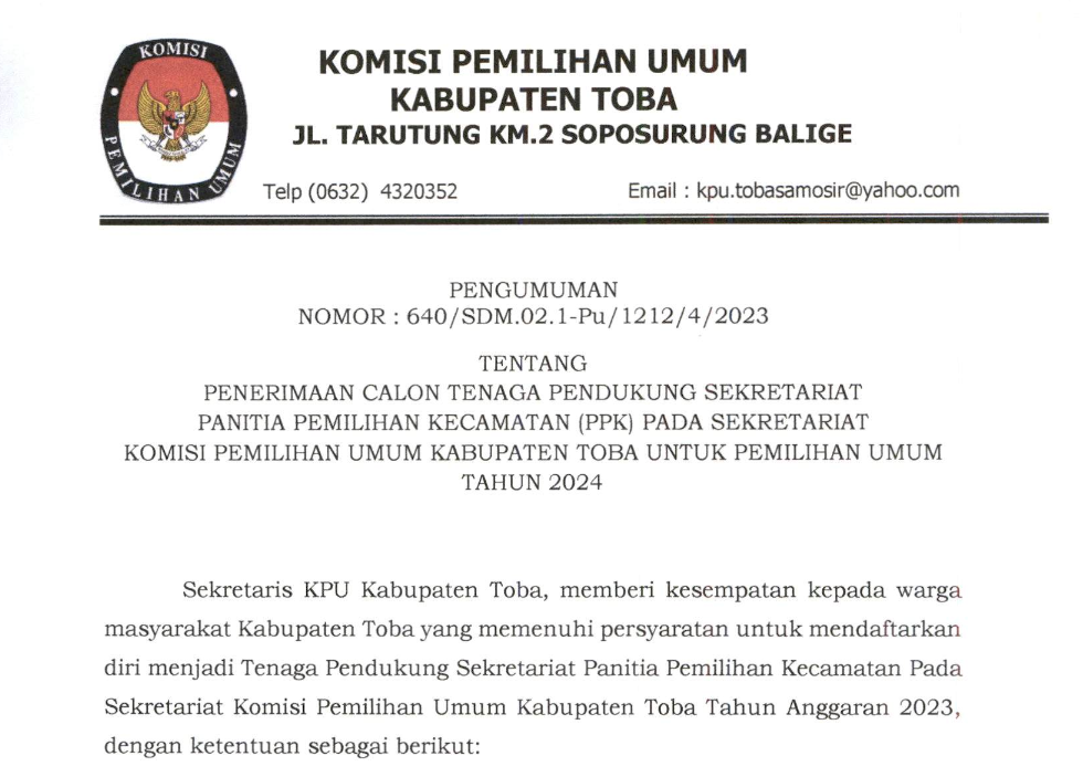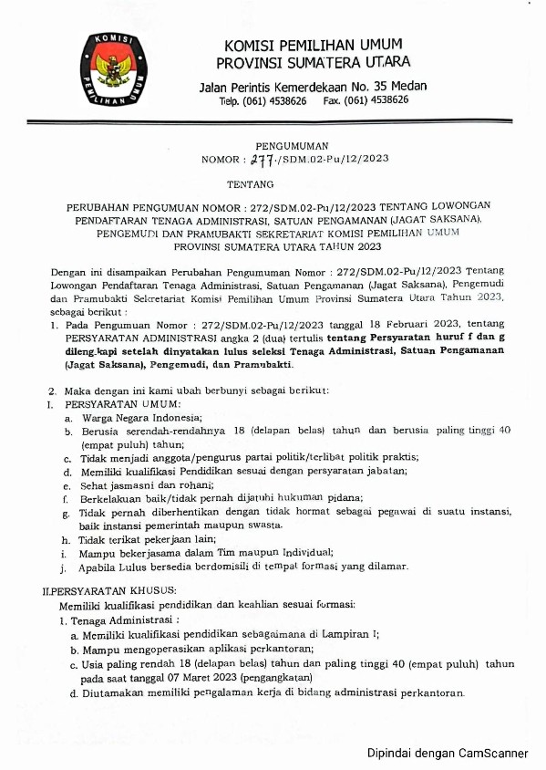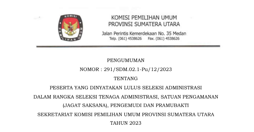 #TemanPemilih, Sekretaris Komisi Pemilihan Umum Provinsi Sumatera Utara memberi kesempatan kepada putra-putri terbaik bangsa untuk menjadi Tenaga