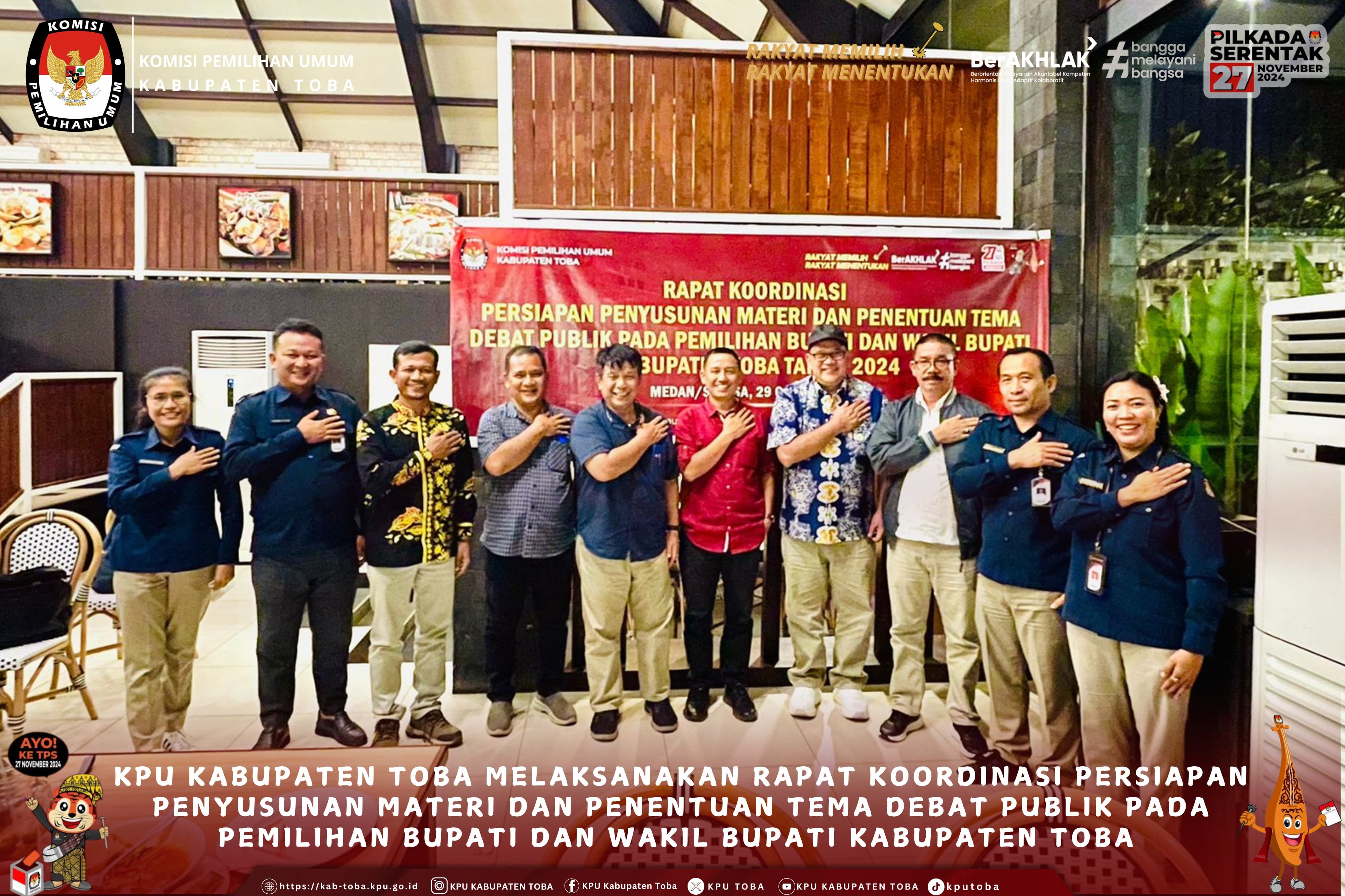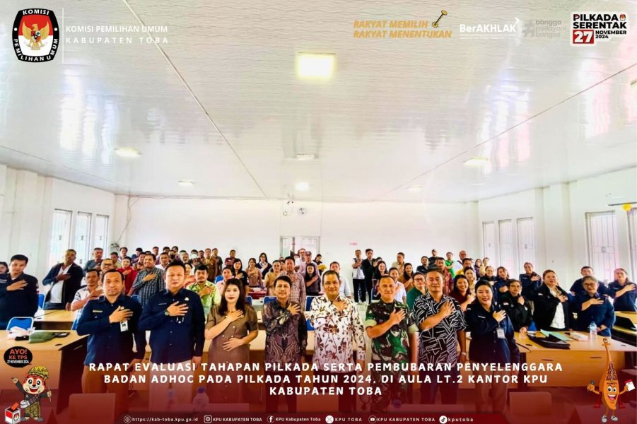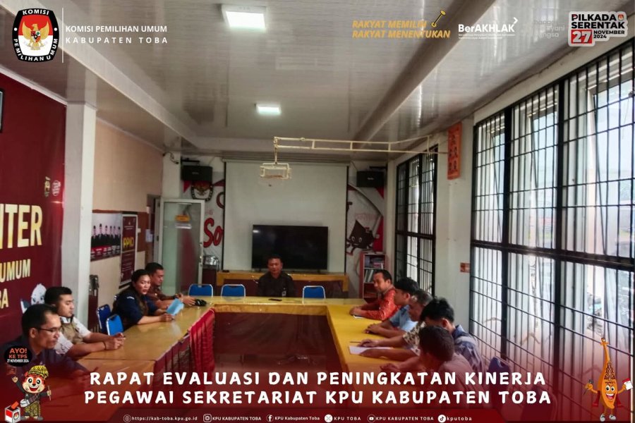 #TemanPemilih, Rapat Evaluasi Tahapan Pilkada serta Pembubaran Penyelenggara Badan Adhoc Pada Pilkada 2024, Aula Lt.2 Kantor KPU Kabupaten Toba, Sabtu (25/1/25). Dalam kesempatan itu, KPU Toba memberikan apresiasi sebesar-besarnya kepada seluruh anggota Panitia Pemilihan Kecamatan (PPK) se-Kabupaten Toba. Ketua KPU Kabupaten Toba Sugar Fernando Sibarani mengatakan, dia sangat mengapresiasi kinerja dari PPK se-Kabupaten Toba. Bahkan karena kinerja PPK sampai kepada jajaran di tingkat KPPS maka Pemilu dan Pemilihan Serentak Tahun 2024 di Kabupaten Toba dapat berjalan dengan lancar. “Terima kasih telah ikut membuat Pemilu dan Pemilihan di Kabupaten Toba sukses,” tambahnya. Dalam laporan kegiatan yang disampaikan Kasubbag SDM Frans Laurensus Sitinjak, tujuan dilaksanakannya kegiatan ini adalah untuk menyampaikan hasil penilaian (evaluasi) atas kinerja Badan _Ad Hoc_ yang diwakili tingkat PPK yang telah ikut serta dalam menyukseskan Pemilu dan Pemilihan Serentak Tahun 2024, memberikan kesempatan yang sama kepada _Ad Hoc_ (PPK) untuk menyampaikan DIM yang merupakan perjalanan setiap tahapan kegiatan Pemilu dan Pemilihan di setiap Kecamatan, dan mendapat penegasan dari Ketua dan anggota KPU Kabupaten Toba bahwa semua masukan dari PPK selaku _Ad Hoc_ menjadi motivasi untuk meningkatkan kinerja KPU Kabupaten Toba dan jajaran beserta seluruh Penyelengara Badan _Adhoc_ dalam Pemilu dan Pemilihan yang mendatang. Selain itu, kegiatan tersebut juga digunakan sebagai pembubaran penyelenggara badan adhoc pada Pemilihan Gubernur dan Wakil Gubernur serta Bupati dan Wakil Bupati Tahun 2024. Helderia Purba selaku Divisi Sosdiklih, Parmas dan SDM juga menyampaikan “Semoga kami dapat terus berbenah di Pemilu dan Pemilihan yang akan datang.” Disusul dengan Posman Naiborhu selaku Divisi Perencanaan, Data, dan Informasi menyampaikan hasil evaluasi berfokus pada Pemutakhiran Data Pemilih. Richardo F. Butarbutar sebagai Sekretaris KPU Kabupaten Toba menyampaikan point-point penting dalam penyelesaian laporan pertanggungjawaban keuangan serta rasa terimakasih yang sebesar-besarnya atas dukungan sehingga suksesnya pelaksanan tahapan Pemilihan. Rapat ini diikuti oleh para Stakeholder dan seluruh Ketua dan anggota PPK se-Kabupaten Toba beserta Sekretaris PPK. Dalam kesempatan tersebut KPU Kabupaten Toba menyampaikan Piagam/Sertifikat Penghargaan sebagai bentuk ucapan terimakasih yang sebesar-besarnya atas suksesnya pelaksanan kegiatan selama proses Tahapan Pilkada Serentak Tahun 2024. KPU Kabupaten Toba membidangi SDM menyiapkan beberapa piagam penghargaan yang disampaikan oleh jajaran KPU Kabupaten Toba kepada PPK dengan beberapa kategori yaitu Penyampaian Laporan Kinerja, Penyampaian Laporan Pertanggungjawaban Keuangan, Pengelolaan Data Pemilih, Operator Sidalih, Pengelolaan Aplikasi Sirekap, dan Penyampaian Laporan Pelaksanaan Rapat Pleno Rutin. #KPUMelayani