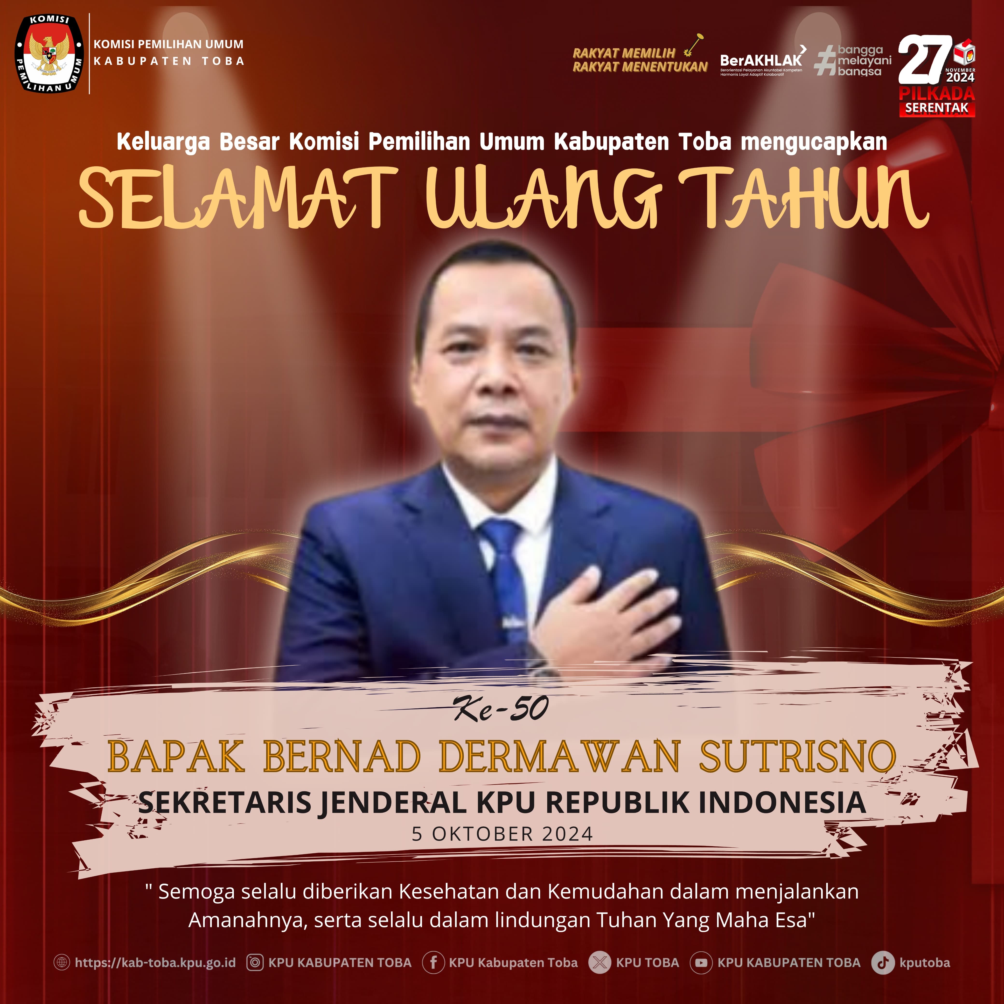 4.Mengajak seluruh Generasi Z Kabupaten Toba mengawal dan mewujudkan pilkada berkualitas, berintegritas, aman dan damai. Ditambahkan juga bahwa ke 33 SLTA se-Kabupaten Toba, dengan perwakilan masing-masing sekolah 2 orang, terdiri dari 1 orang siswa dan 1 orang siswi dan didampingi 1 orang guru, yanh diaksanakan pada hari Senin, 7 Oktober 2024 di Aula SMK Negeri 1 Balige.