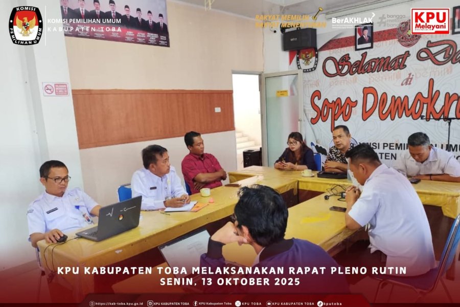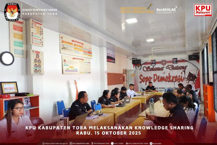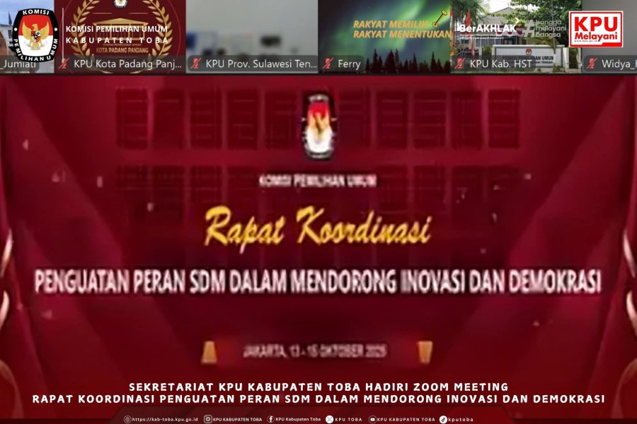 #TemanPemilih, Jajaran KPU Kabupaten Toba Hadiri Kegiatan Seri Webinar KPU di Lingkungan KPU Periode Oktober-Desember 2025, Balige. Jumat (31/10/2025). Dalam rangka mendorong pemanfaatan teknologi informasi dan komunikasi serta mendukung pelaksanaan transformasi digital di lingkungan KPU, jajaran KPU Kabupaten Toba mengikuti Seri Webinar KPU yang dilaksanakan secara daring melalui aplikasi Zoom setiap minggunya selama bulan Oktober s.d Desember 2025 dari Rumah Pintar Pemilu (RPP). Kali ini materi per tanggal 31 Oktober 2025 terkait Pengolahan, Analisa, dan Visualisasi Data. Turut hadir mengikuti Ketua KPU Kabupaten Toba Sugar Fernando Sibarani, Koordiv. Parhubmas, Sosdiklih, dan SDM Helderia Purba, Koordiv. Hukum dan Pengawasan Erikson Sitorus beserta jajaran Sekretariat KPU Kabupaten Toba Sekretaris Richardo F. Butarbutar, Kasubbag Perdatin Haryanti Simarmata, Kasubbag SDM Frans L. Sitinjak beserta staf Sekretariat KPU Kabupaten Toba. Melalui kegiatan ini, diharapkan seluruh jajaran Sekretariat KPU Pusat, KPU Provinsi/KIP Aceh serta KPU Kabupaten/Kota dapat memperluas wawasan dan memperkuat kompetensi dalam menerapkan prinsip-prinsip transformasi digital untuk mendukung peningkatan efektivitas, efisiensi, transparansi, dan akuntabilitas kinerja kelembagaan. #KPUMelayani