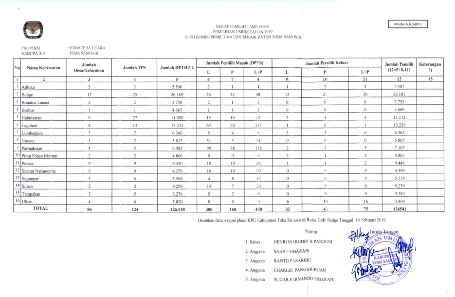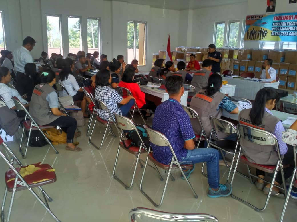 Dalam rangka pengamanan tahapan Pemilihan Umum Tahun 2019, Komisi Pemilihan Umum Kabupaten Toba Samosir melaksanakan rapat koordinasi dengan instansi terkait yaitu Pemerintah Kabupaten Toba Samosir, Kepolisian Resor Toba Samosir, Kejaksaan Negeri Balige, Pengadilan Negeri Balige, Koramil Balige, dan Bawaslu Toba Samosir. Dalam paparannya, Kabid Linmas Satuan Polisi Pamong Praja Toba Samosir mengatakan sudah mulai melaksanakan perekrutan petugas ketertiban di TPS dan progresnya akan dipaparkan pada pertemuan selanjutnya. Polres Toba Samosir akan melibatkan personil sejumlah 284 orang untuk pengamanan Pemilu 2019 sedangkan untuk pengamanan TPS akan diterjunkan sebanyak 195 personil. Karena kekurangan personil, maka sistim pengamanannya nantinya adalah dengan patroli. Babinsa Koramil Balige Bapak Ade R. Situmorang mengatakan bahwa gudang KPU Toba Samosir dan tempat-tempat penampungan logistik Pemilu 2019 harus dijaga dengan sebaik dan semaksimal mungkin.