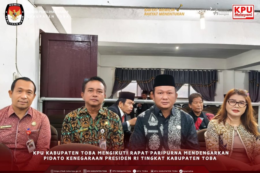 KPU Kabupaten Toba hadiri undangan DPRD Kabupaten Toba dalam rangka Mendengarkan Pidato Kenegaraan Presiden Republik Indonesia pada peringatan Hari Ulang Tahun ke-80 Kemerdekaan Republik Indonesia Tahun 2025 Tingkat Kabupaten Toba pada hari Jumat, Tgl. 15 Agustus 2025 bertempat di Ruang Rapat Paripurna DPRD Kabupaten Toba.