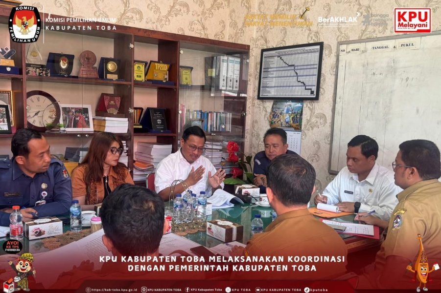 #TemanPemilih, KPU Kabupaten Toba Koordinasi ke Pemkab. Toba, Balige. Selasa (29/7/2025). Sehubungan dengan telah selesainya tahapan Pemilu dan Pemilihan Serentak Tahun 2024, KPU Kabupaten Toba melaksanakan Koordinasi dengan Pemerintah Kabupaten Toba di ikuti oleh Koordiv.Teknis Penyelenggaraan Riduan Marpaung sebagai Divisi yang membidangi didampingi oleh Koordiv. Sosdiklih, Parhubmas, dan SDM Helderia Purba, Kasubbag SDM Frans L. Sitinjak, Kasubbag Teknis Penyelenggaraan Mindo H. Simbolon, Kasubbag Perdatin Haryanti Simarmata, beserta staf SDM dan Teknis. Koordinasi tersebut diterima langsung oleh Sekda Augus Sitorus, Asisten Administrasi Umum Verry S. Napitupulu, Kaban BPKAD Fernando Samosir, dan Plt. Kaban Kesbangpol Freddy A. Panjaitan. Koordinasi ini terkait penyusunan kajian teknis pelaksanaan Pemilu dan Pemilihan Serentak Tahun 2024, berdasarkan pengalaman langsung sebagai penyelenggara yang nantinya kajian dimaksud diharapkan dapat menjadi bahan masukan yang komprehensif bagi para pemangku kebijakan dalam rangka pembahasan revisi Undang-Undang Pemilu dan Pemilihan. Riduan menyampaikan bahwa bagian penting dari Koordinasi ini juga terkait penggunaan anggaran dalam pelaksanaan kegiatan sebagaimana dijelaskan dalam surat KPU Nomor 834/PL.01-SD/06/2025 Perihal Pelaksanaan Kegiatan Berbagi Pengalamanan dalam Rangka Reviu Pelaksanaan Tahapan Teknis Pemilu dan Pemilihan, dan Surat KPU Nomor 1109/PL.01-SD/06/2025 Perihal Penjelasan Pelaksanaan Kegiatan Pasca Pemilu dan Pemilihan. Maka KPU Kabupaten Toba berkoordinasi dengan Pemerintah Daerah kemungkinan pengajuan anggaran hibah daerah non pemilihan dengan mempedomani ketentuan yang termuat pada Keputusan KPU Nomor 522 Tahun 2022 tentang Pedoman Perencanaan dan Penganggaran Hibah Daerah Non Pemilihan Gubernur dan Wakil Gubernur, Bupati dan Wakil Bupati dan/atau Walikota dan Wakil Walikota di Lingkungan Komisi Pemilihan Umum Kabupaten/Kota. #KPUMelayani