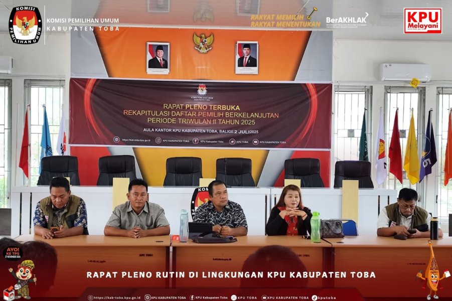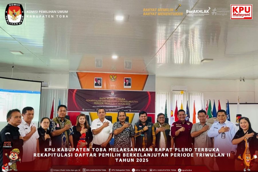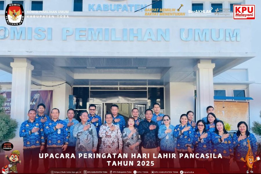 Menindaklanjuti Surat Edaran Kepala Badan Pembinaan Ideologi Pancasila Nomor 5 Tahun 2025 dan Surat Sekjen KPU Nomor 1882/PK.02.1-SD/04/2025 Perihal Perubahan Waktu Pelaksanaan Upacara Peringatan Hari Lahir Pancasila Tahun 2025, KPU Kabupaten Toba melaksanakan upacara peringatan hari lahir Pancasila Tahun 2025 di halaman kantor KPU Kabupaten Toba.